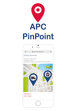 Track your parcel every step of the way using ‘APC Pinpoint’ , simply enter your consignment number and delivery postcode and our regularly updated map will PinPoint the delivery driver’s current stop and how close the driver is to the delivery destination.